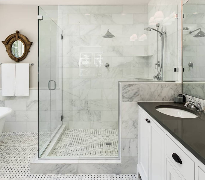 Transform your bathroom with a stunning frameless shower enclosure, custom-designed to fit your home perfectly. Choose from a range of high-quality hardware finishes, including clips and channels, and create a show-stopping look with a variety of designer glass styles. With these options, you can be confident in achieving your dream bathroom.