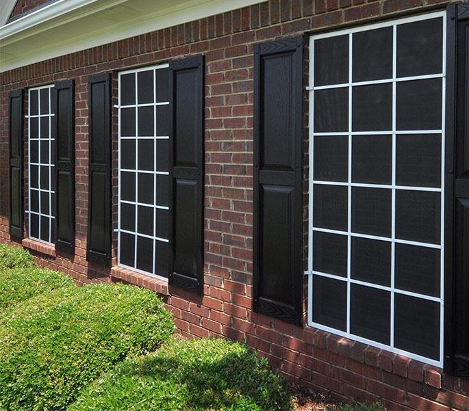 Solar screens block 80-90% of the sun’s heat and glare. They’re made with heavy-duty insect mesh and vinyl-coated polyester that’s pet-resistant, mildew-resistant, and fade-resistant. Solar screens are low-maintenance and provide shade, privacy, and save energy by reducing the heating effect of the sun’s rays.